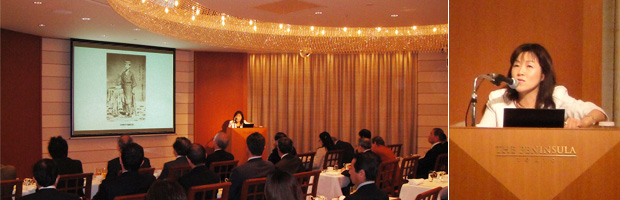 2010年3月17日(水)、ザ・ペニンシュラ東京にて小坂文乃氏の講演による朝食勉強会が開催されました。小坂氏は、孫文を支援して中国革命を成就させた梅屋庄吉の曾孫にあたり、昨年孫文と梅屋庄吉の伝記である「革命をプロデュースした日本人」を上梓されました。2008年5月6日には、来日中の胡錦濤中国国家主席が松本楼を訪れるなど、両国の歴史に深いかかわりを持たれています。