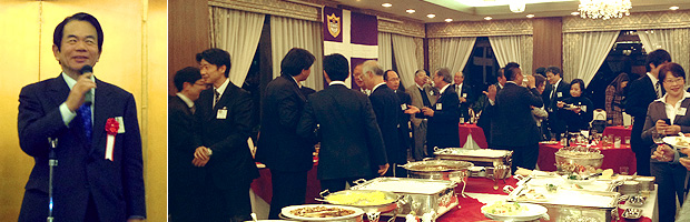 19時より、第二部となる新春名刺交換会へ席を移し、立教学院理事長 糸魚川順様、立教大学総長 吉岡知哉様を始め、各学部長・教授、校友会副会長 小出康之様、立教出版クラブ会長 藤岡比佐志様、マスコミ立教会会長 砂田郁郎様含めご来賓26名をお迎えして開催されました。開会のご挨拶として経済人クラブ 和田成史会長より、例年より多くの出席者(総勢117名)を迎えて盛大に開催できた感謝の言葉に始まり、昨年を振り返る大きな出来事として、何より東北大震災、タイの洪水、中東アラブの民主化革命、ビンラディン・カダフィ・金正日など著名な元首の死去をとり上げられました。続いて、第一部の講師である神藏様への謝辞とともに、お話頂いた政治と我々の足下の興味である経営は、どちらもビジョン・理念が不可欠である旨、語気を強められました。最後に、本年は当会の会員拡大を図り、不安定な世の中を立教らしい結束力で乗り切っていこう、と結ばれました。
