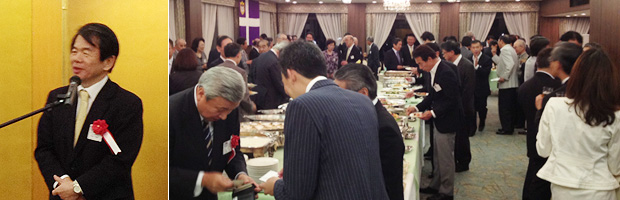 午後6時より、第二部となる講演会が開催されました。立教大学 統括副総長 白石典義様にお越しいただき、「立教大学の今とスポーツ」と題し、少子化時代の中で奮闘する母校立教大学の現状についてご講演いただきました(講演内容に関しては、別頁に紹介しております)。 午後7時より、第三部懇親会へ。第一部の総会で承認を頂いた新総務委員長 湯浅修氏(S59産・株式会社ブレーン代表取締役社長)に、司会のマイクがバトンタッチされました。懇親会から参加のメンバーを加え103名となり、第二部で講師をして頂いた立教大学 白石総括副総長を始め、各学部長・教授、木澤校友会副会長、天沼校友会レディスクラブ会長、マスコミ立教会伏見事務局長、立教学院小中高の校長先生他25名をお迎えして開宴。 開会のご挨拶として経済人クラブ和田会長より、総会が無事に終了した報告と御礼、昨今の経済環境におけるグローバル化のうねりに関しての知見、そして、立教のメンバー同士の横のつながりを大いに利用し、今後の運営に皆様のご支援を賜りたい旨の挨拶をいただきました。 ご来賓を代表し、白石典義 立教大学総括副総長より、第二部の講話に引き続きご挨拶をいただきました。